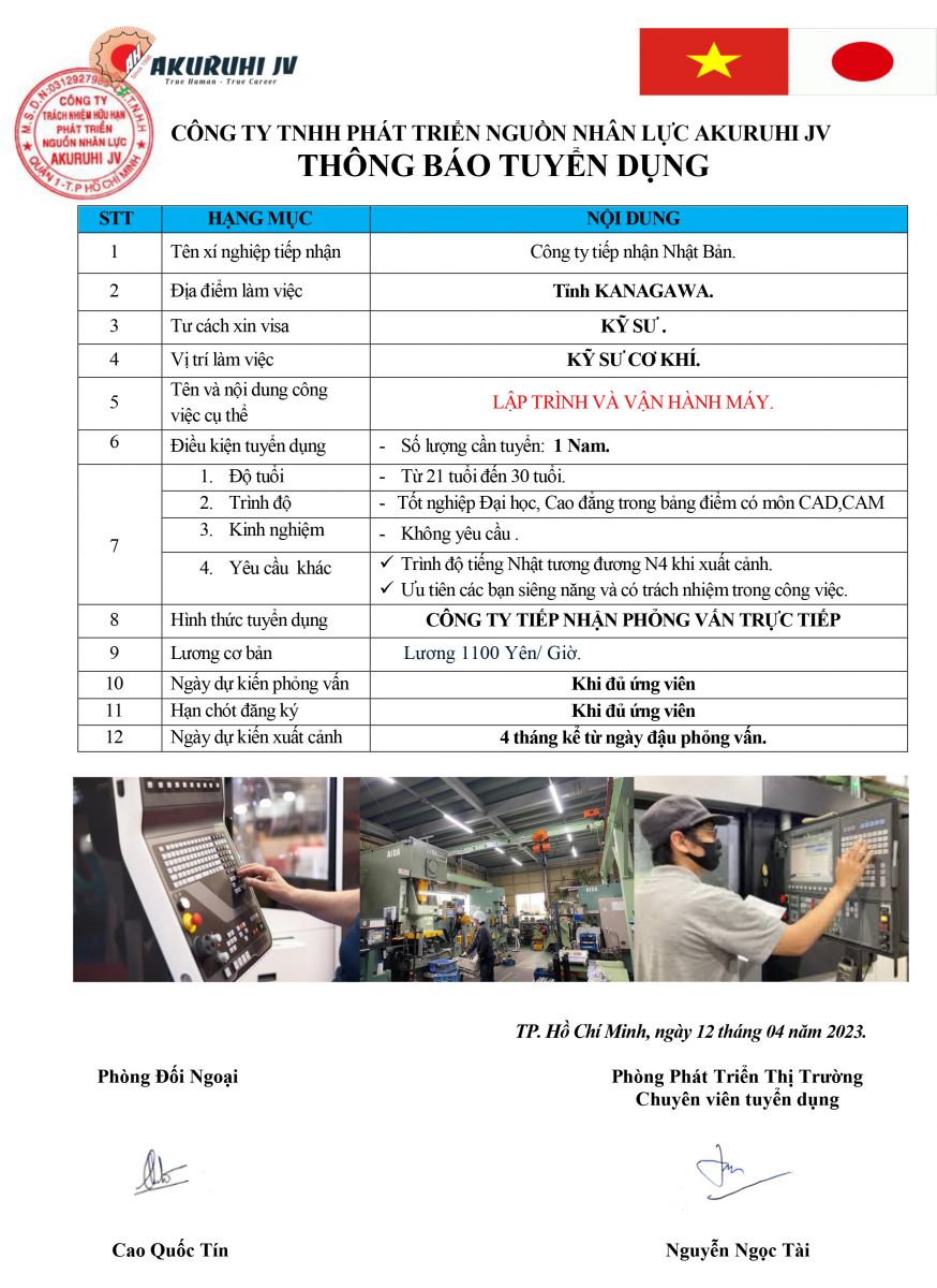 - Học vấn: Tốt nghiệp đại học hoặc Cao đẳng có môn CAD, CAM