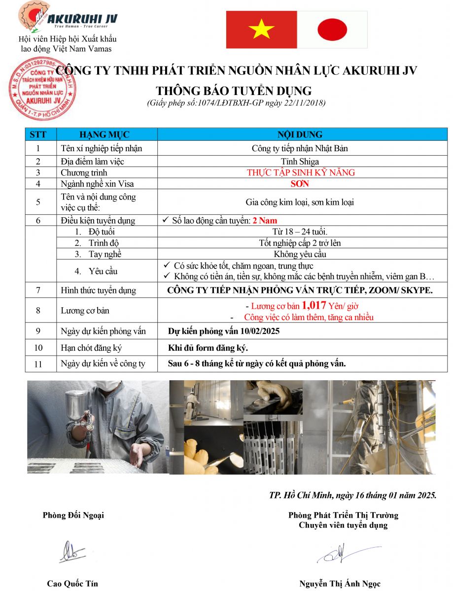 - NƠI LÀM VIỆC: Tỉnh Shiga.