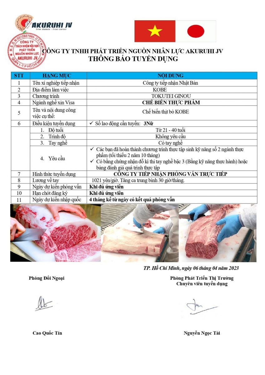 - NGÀNH NGHỀ: TOKUTEI GINOU CHẾ BIẾN THỰC PHẨM