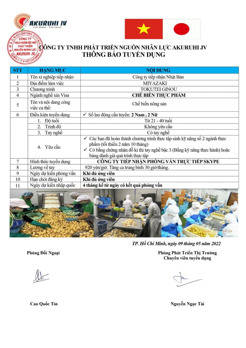 Akuruhijv, Akuruhi JV, công ty cung ứng lao động Nhật Bản, xuất khẩu lao động Nhật Bản, xuat khau lao dong Nhat ban, xuất khẩu lao động Nhật Bản uy tín, xuat khau lao dong nhat ban uy tin, xuất khẩu lao động Nhật Bản giá rẻ, xuat khau lao dong nhat ban gia re, Thực tập sinh kỹ năng đặc định, thuc tap sinh ky nang dac dinh, Đơn hàng Chế biến thực phẩm, Chế biến thực phẩm, che bien thuc pham, Don hang che bien thuc pham, tokutei, quay lai lan 2 che bien thuc pham