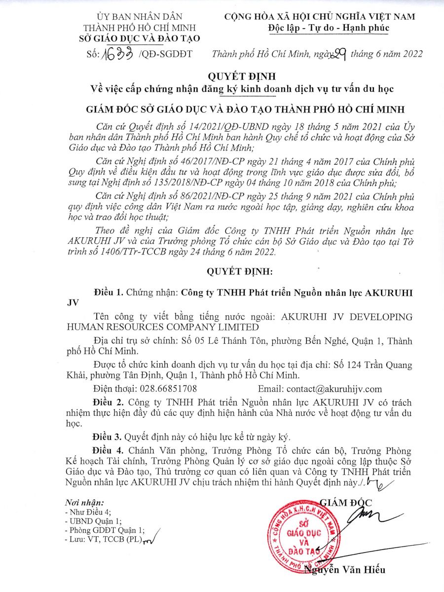 Giấy phép hoạt động dịch vụ Tư vấn du học