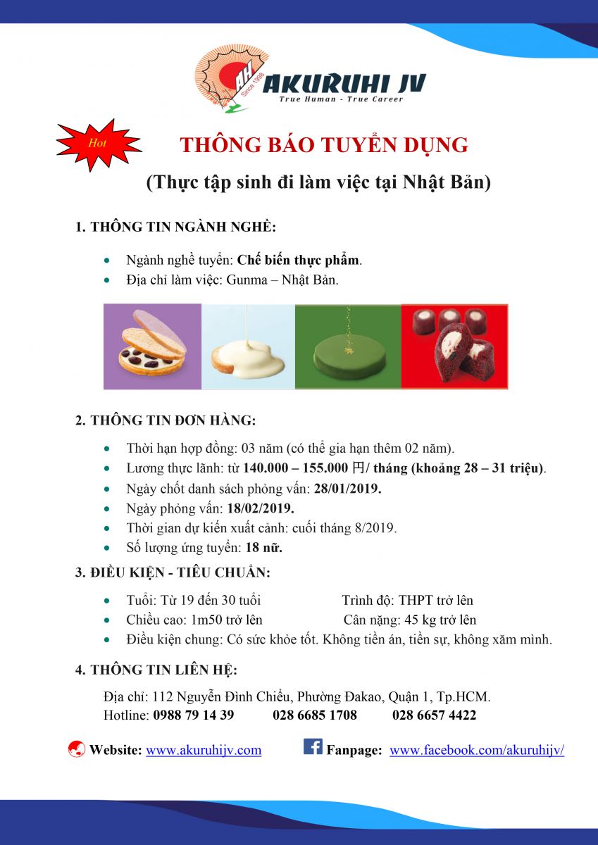 TUYỂN 18 NỮ THỰC TẬP SINH ĐƠN HÀNG THỰC PHẨM