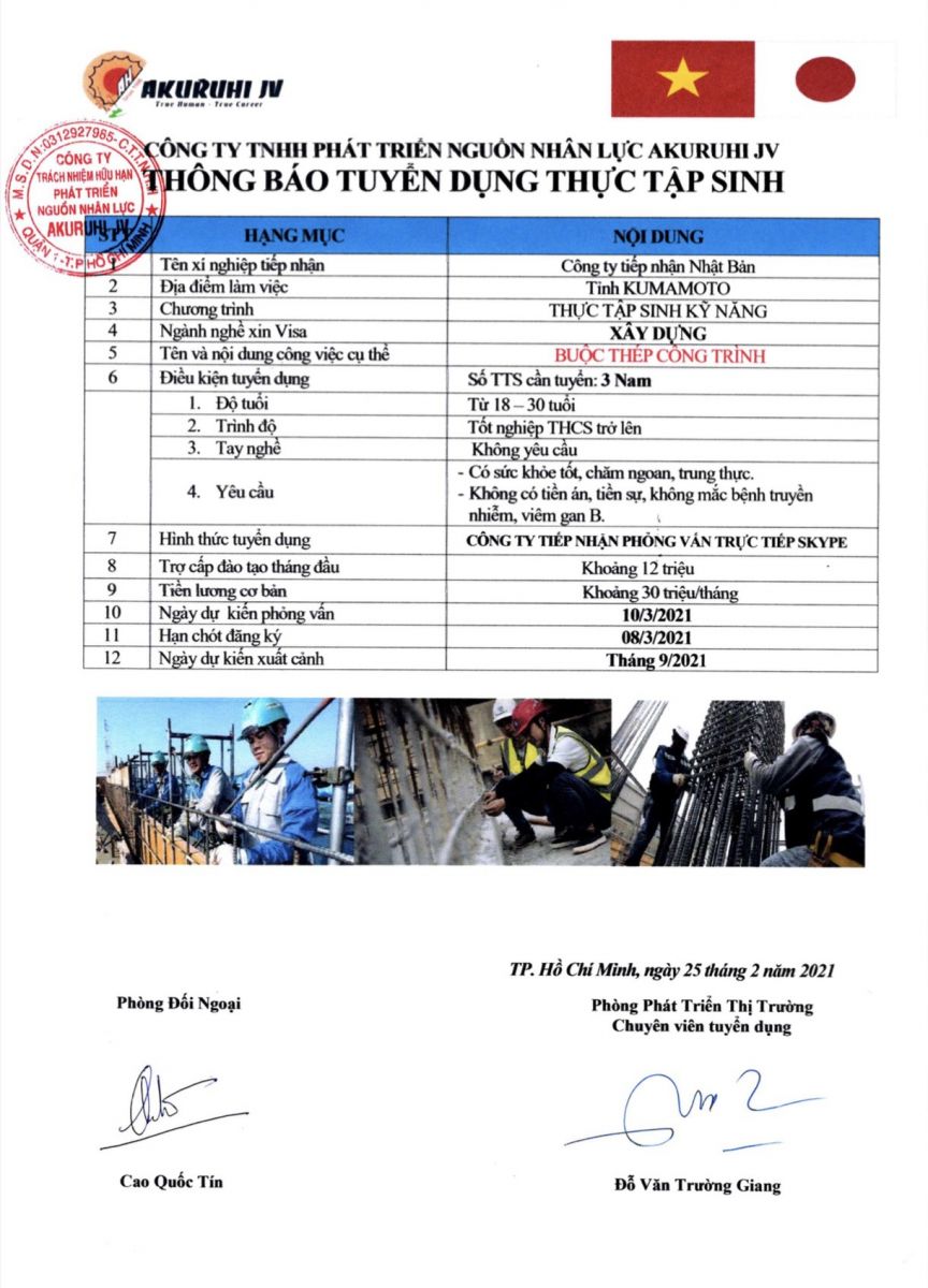 CÔNG TY TNHH PHÁT TRIỂN NGUỒN NHÂN LỰC AKURUHI JV TUYỂN THỰC TẬP SINH KỸ NĂNG